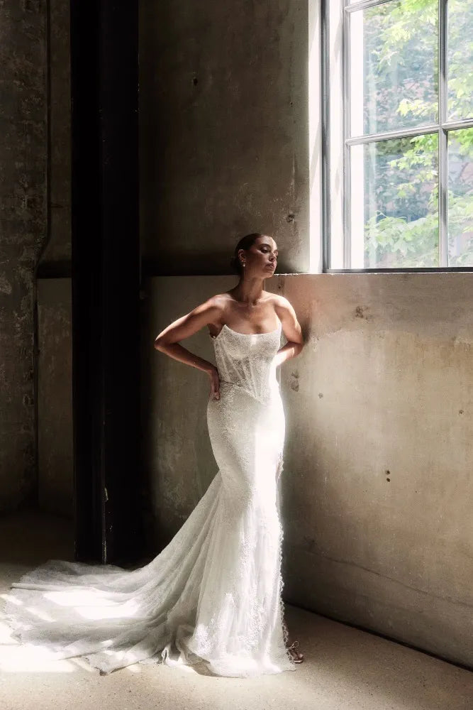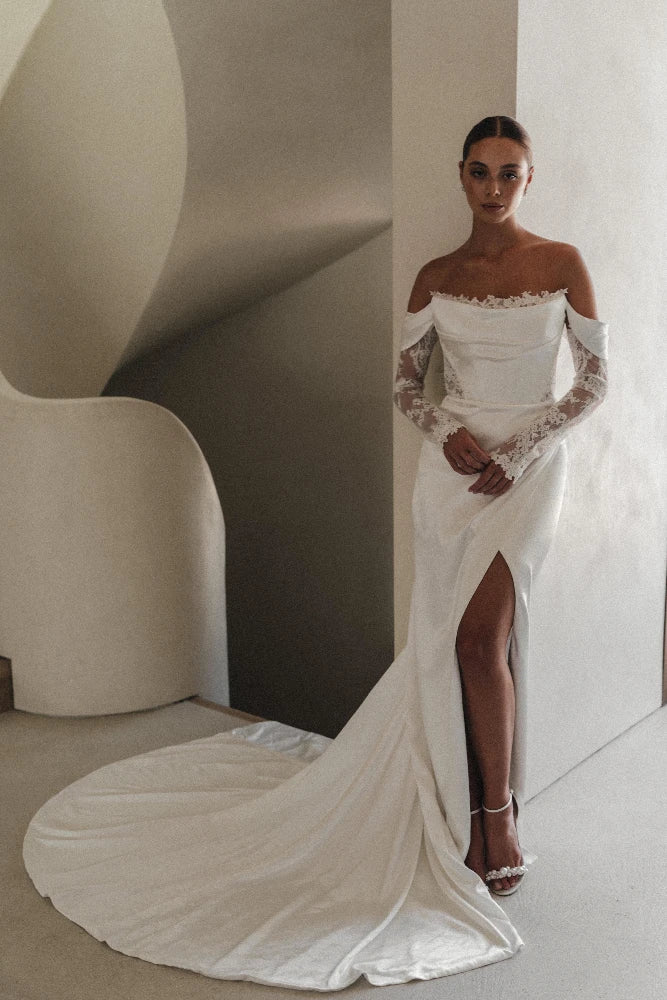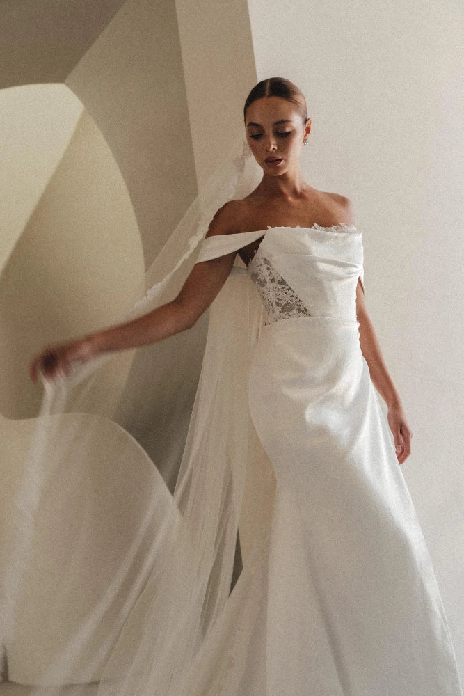 Alena Leena brings a poetic edge to bridal — fluid silhouettes, sculptural detail, and subtle symbolism woven through every gown. Designed for the modern romantic, her pieces feel effortlessly expressive, with just the right balance of softness and statement that speaks to the heart of the Marrime bride.