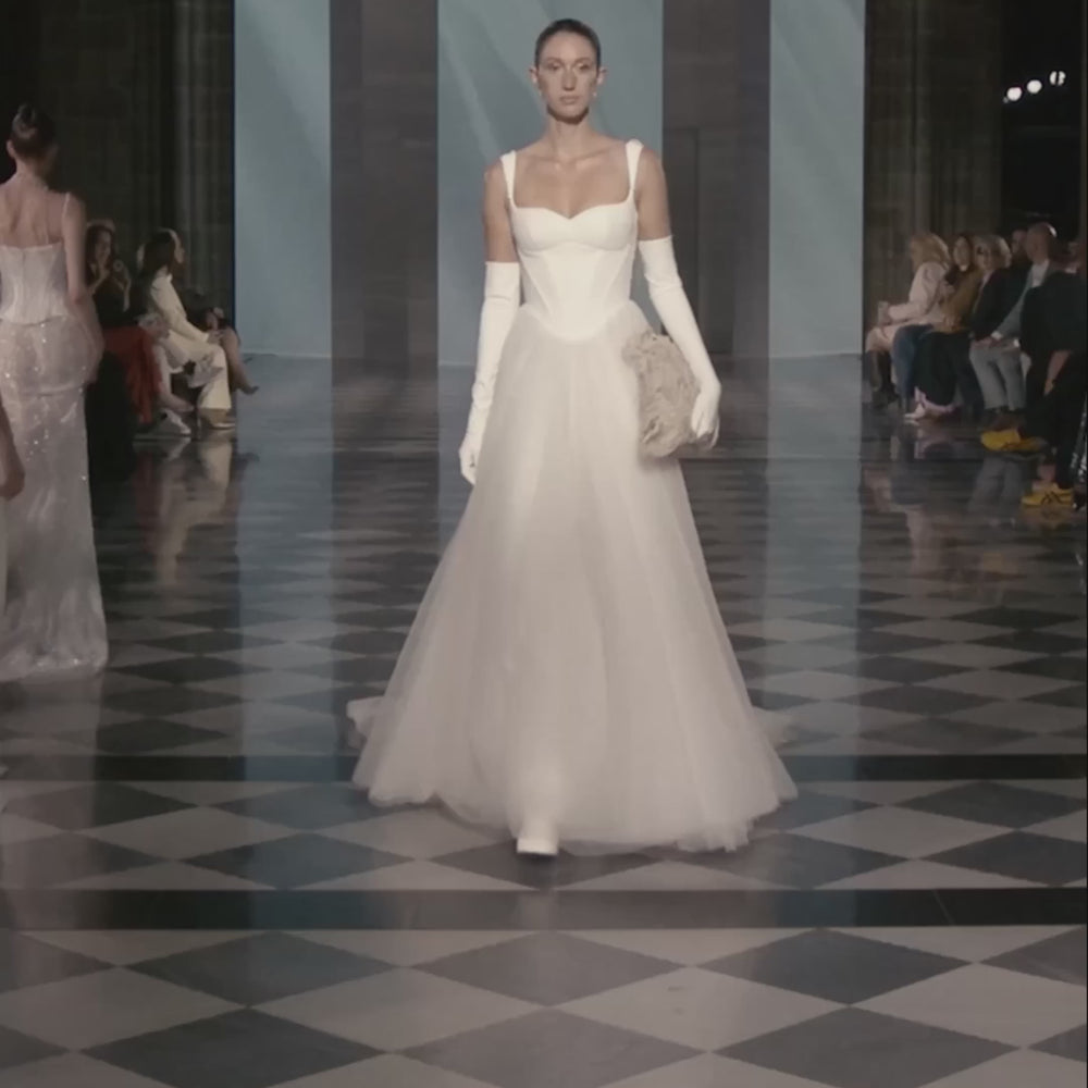 The Milla Nova White and Lace Briselle wedding dress is a romantic and refined choice for the modern bride. This dreamy A-line wedding dress features a structured satin corset bodice paired with a soft, flowing tulle skirt for a look that’s both timeless and ethereal. The heart-shaped neckline with wide-set straps highlights the décolletage while providing gentle support, creating an effortlessly feminine silhouette. Crafted from luxurious satin and delicate tulle, the Briselle dress captures the essence of contemporary elegance with a touch of fairytale charm.