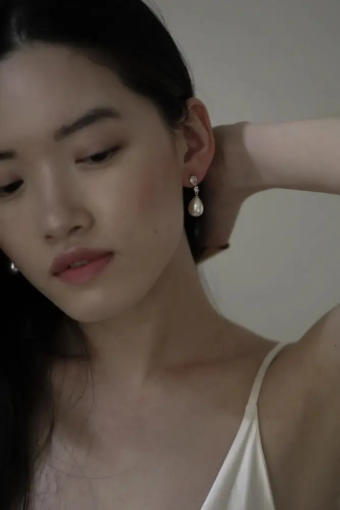 Regular price £67.20Combine modern elegance with vintage sophistication with these stunning Studio Bride By A.B. Ellie bridal pearl and CZ crystal drop earrings. Featuring geometric stacked CZ crystals for a contemporary edge and sleek pearl teardrop dangles for timeless romance, they create the perfect balance of chic and classic. Ideal for brides seeking a statement-making wedding accessory, these earrings are designed to be the finishing touch that elevates any gown, from minimalist silhouettes to romantic, embellished styles