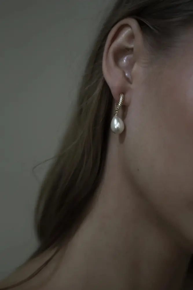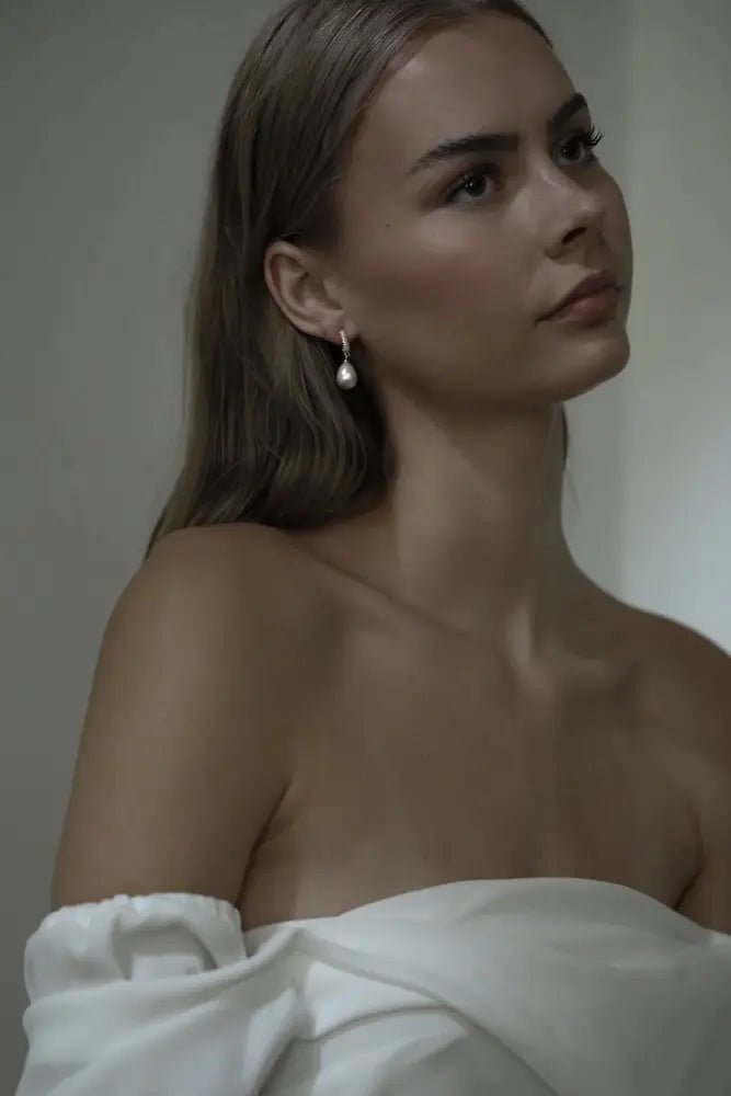 Regular price £74.40Elevate your bridal look with the Studio Bride By A.B. Ellie Pavé Hoop Pearl Drop Earrings, a chic and sophisticated accessory for any wedding ensemble. Featuring a sparkling pavé hoop and a lustrous pearl drop, these earrings add the perfect touch of glamour and elegance. Available in silver or gold, they complement a variety of bridal styles, from minimalist gowns to romantic, statement-making wedding dresses, making them a versatile and timeless choice