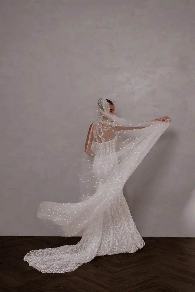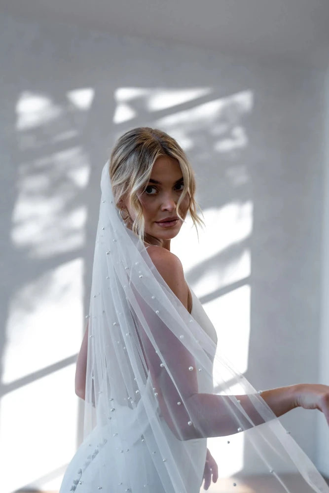 The veils in the Marrime edit are sheer statements - weightless layers of modernity that add depth, drama, and direction to your bridal look. Editorial by nature and intentional by design, they’re the finishing touch that transforms a moment into a mood.