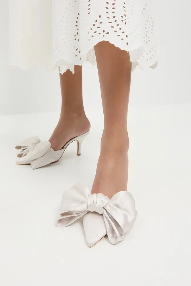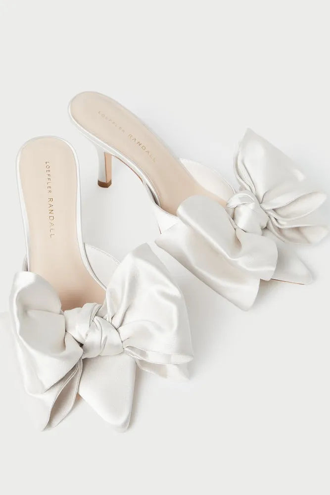 Loeffler Randall Margot Cream Satin Bow Wedding Shoes
